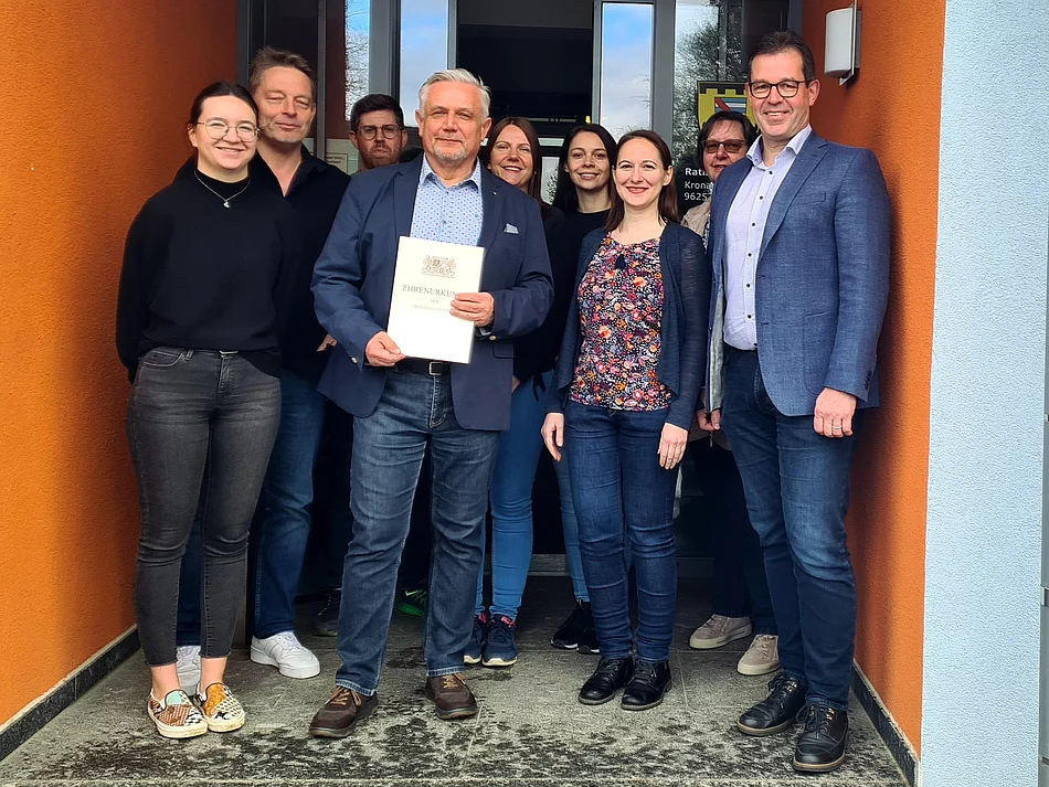 Zum 01.04.2024 konnte Gemeinschaftsvorsitzender Jürgen Gäbelein eine ganz besondere Ehrung vornehmen: Dipl.-Ing. (FH) Joachim Stefan aus dem gemeindlichen Bauamt feierte sein 40-jähriges Dienstjubiläum.